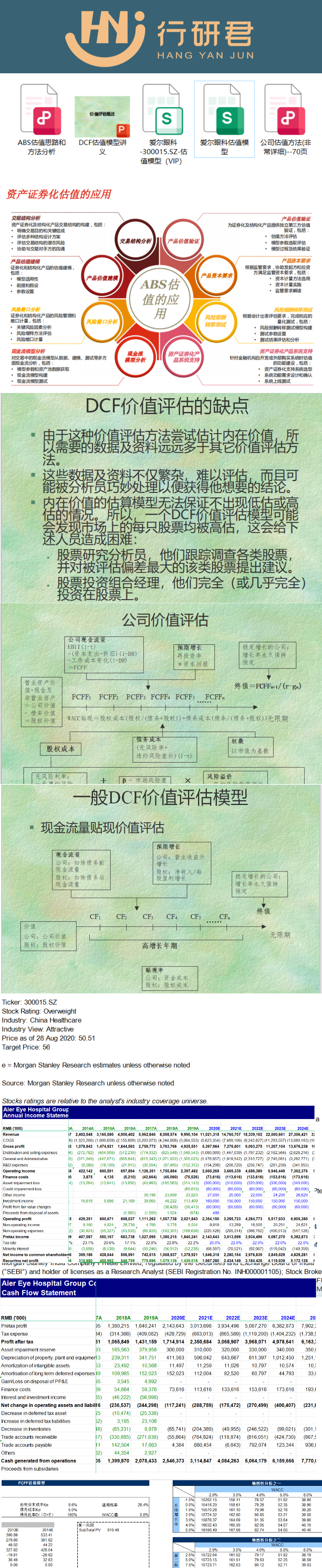 爱尔眼科估值模型资料包