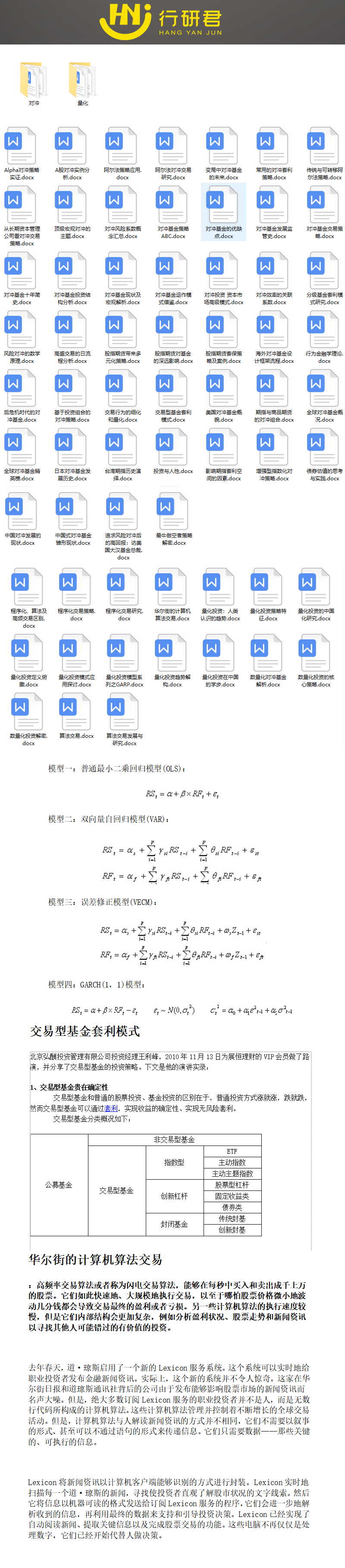 量化对冲资料 2025-08-30 精品打包 510 “量化”指借助统计方法、数学模型来指导投资,其本质是定性投资的数量化实践。“对冲”指通过管理并降低组合系统风险以应对金融市场变化,获取相对稳定的收益。 资源下载下载价格8.8 金币终身VIP免费升级终身VIP立即购买 0 0